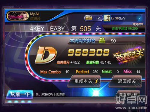 1、505关My All 4k easy,要求连击不超过200,如果不看清过关要求那就很难过。
