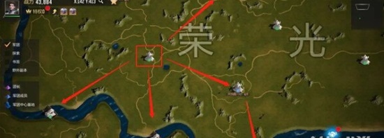 落堡位置可以选择在1级的智慧圣殿旁,占领后可以根据2级圣殿的开启时间选择领土扩展的方向。