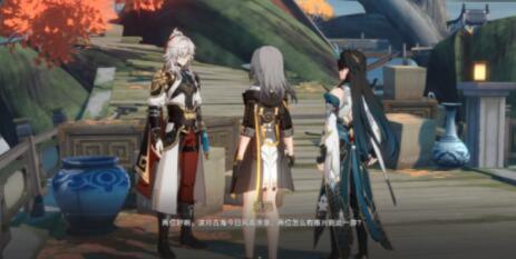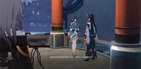 1、进入游戏到长乐天凉亭处找到丹恒,可以看到丹恒在和一个持明族女人对话,她是白露的侍女浣溪。
