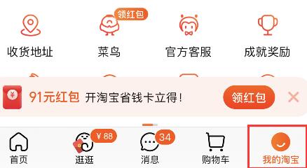 在个人账户页面,找到“我的淘宝”选项,点击进入;