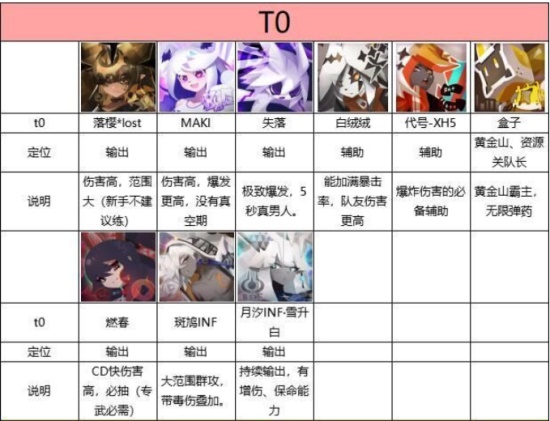 1、T0:落樱lost、MAKI、失落、白绒绒、代号·XH5、盒子、燃春、斑鸠INF、月汐INF·雪升白
