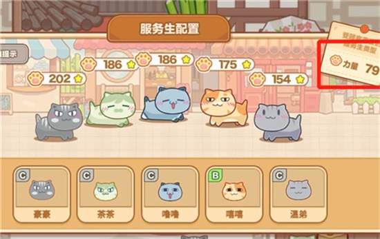 当猫放在旅馆之后,旅馆的小费的收益与猫咪的属性是挂钩的,旅馆每天都有个猫咪属性需求值,猫咪的属性只要超过属性需求值的百分之150就会使收益达到最大化。举个例子。如上图所示,当需求值为79之后,假如我将400力量值的猫咪放在里面,与154猫咪起到的作用是一样的。因为都超过了79的百分之一百五也就是118.5的数值。