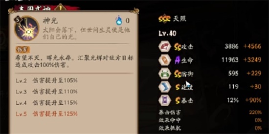 第三种效果:当天照受到敌方攻击时,会对敌方的伤害来源附加【光涤】效果(让敌方防御下降150点,对天照造成的伤害会降低40%)。