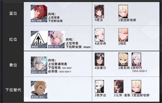 阵容推荐:蓝位-薇拉·绯耀 红位-丽芙流光 黄位-露西亚深红囚影。下位替代,库洛姆·弧光。