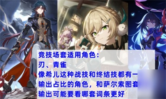 萨尔索图套已经证明了它的泛用性,那么竞技场套也不会差到哪里去。不过问题在于,目前主要靠普攻和战技输出的角色不多,竞技场套的适用角色应该是青雀和1.2版本的刃。像景元、克拉拉和彦卿,还是萨尔索图套更适合。至于希儿,如果你已经有一套词条不错的萨尔索图套,可能就没必要重新刷竞技场套了。
