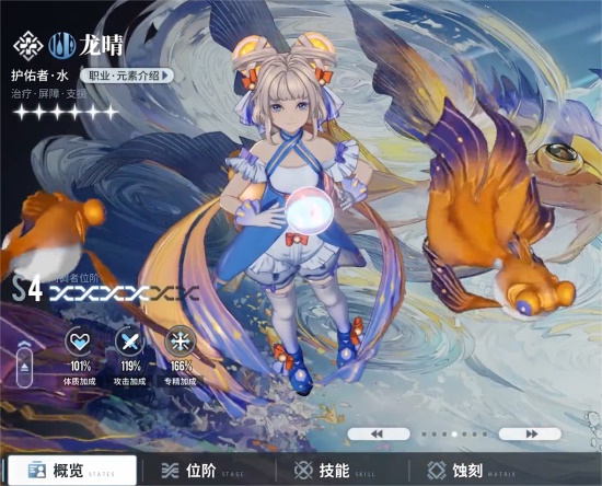 阳铃是目前游戏中唯一的霜元素角色,她是治疗量偏小但独具特色的易伤奶,能对敌人造成易伤,并提升我方队友攻击力与攻速。