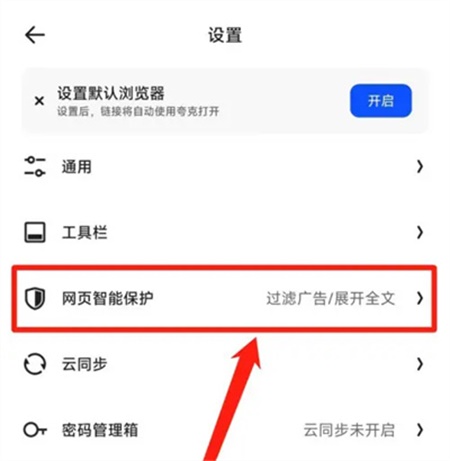 2.进入到设置页面后,在其中找到“网页智能保护”,并在上面点击选择。